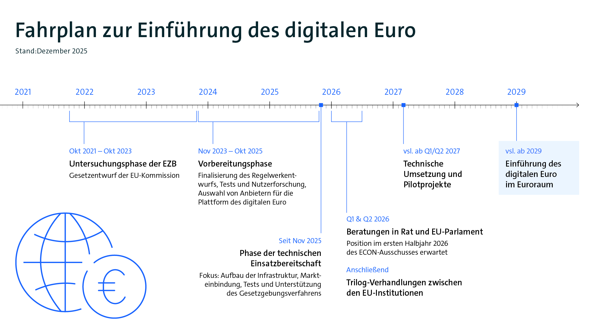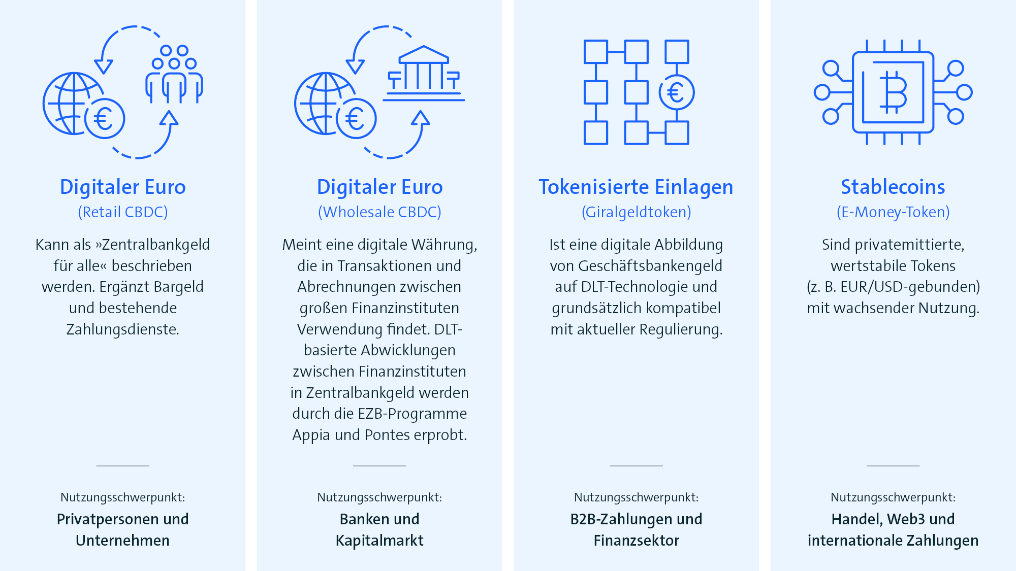 Die Einführung eines digitalen Euros erfordert eine sorgfältige Ausgestaltung, um die Wahlfreiheit der Kundinnen und Kunden zu fördern und gleichzeitig sicherzustellen, dass eine Benachteiligung von etablierten Zahlungswegen ausgeschlossen wird. Dies bedingt die Schaffung klar definierter rechtlicher und regulatorischer Rahmenbedingungen, die einen fairen Zugang und gleiche Bedingungen für sämtliche Marktteilnehmer gewährleisten. Dazu könnte eine holistische Strategie auf nationaler und europäischer Ebene, die alle Geldformen – Zentralbankgeld, Giralgeld und E-Geld – gleichwertig berücksichtigt und deren Akzeptanz fördert, beitragen.