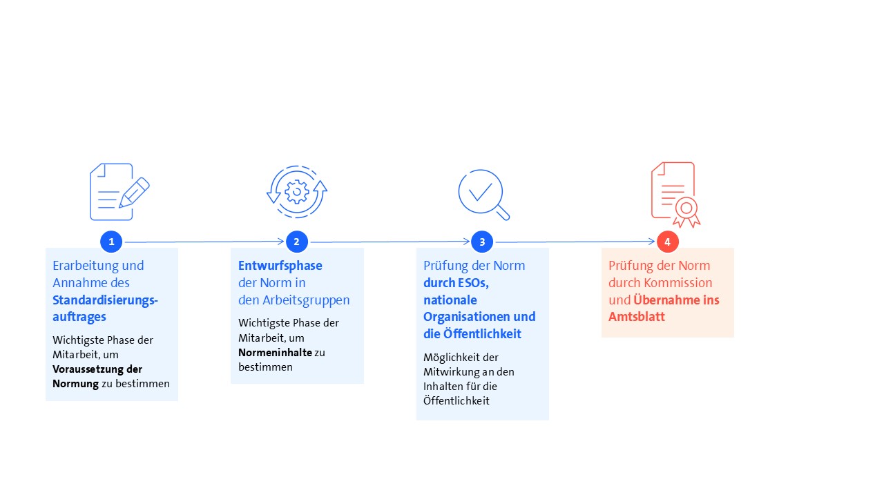 Um beim Erstellen der harmonisierten Normen teilzuhaben, gibt es verschiedene Wege:
