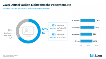 Die potenziellen Nutzer fordern dabei für sich vor allem Datenhoheit. 61 Prozent wollen, dass sie beim Patienten liegt, weitere 59 Prozent verlangen ein Höchstmaß an Datenschutz und Datensicherheit. Für 45 Prozent sind außerdem eine strukturierte Darstellung und für ein Drittel (34 Prozent) ein mobiler Zugang wichtig. „Die Elektronische Patientenakte wird nur dann ein Erfolg, wenn sie dem Patienten einen echten Nutzen stiftet und unkompliziert zu bedienen ist“, sagt Berg. „Vorhandene Daten sollten viel stärker– auch mobil – genutzt werden. Über eine entsprechend ausgestaltete Elektronische Patientenakte wäre das möglich. Bei gleichzeitiger Wahrung des Datenschutzes könnte die medizinische Versorgung so deutlich verbessert werden.“